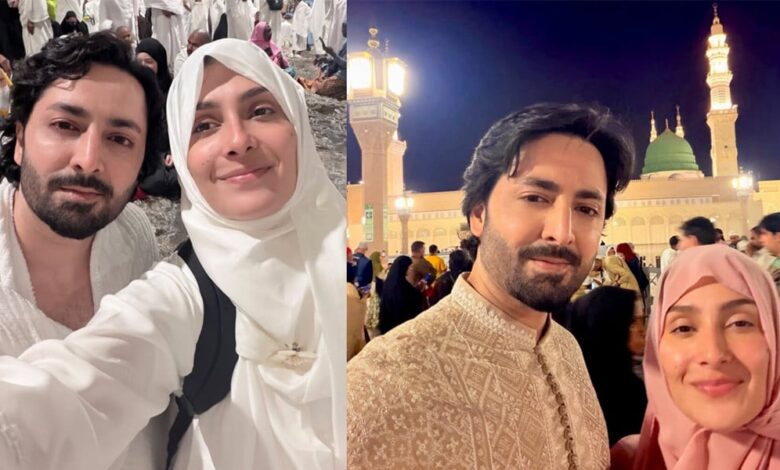 عائزہ خان اور دانش تیمور کی عمرہ ادائیگی، مقدس مقامات پر لی گئی تصاویر وائرل