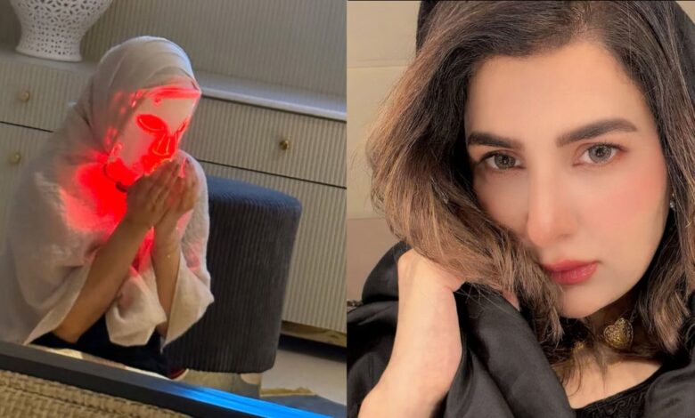 عریبہ حبیب نے حال ہی میں اپنے سوشل میڈیا اکاؤنٹ پر ایک تصویر شیئر کی جس میں وہ نماز ادا کرتی نظر آئیں۔ تصویر میں انہوں نے سفید رنگ کا حجاب اوڑھا ہوا تھا، تاہم مداحوں کی حیرت اس وقت تشویش میں بدل گئی جب لوگوں نے دیکھا کہ اداکارہ نے چہرے پر ایل ای ڈی اسکن کیئر فیس ماسک بھی لگا رکھا ہے۔ ہوں۔