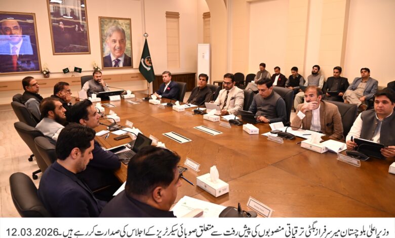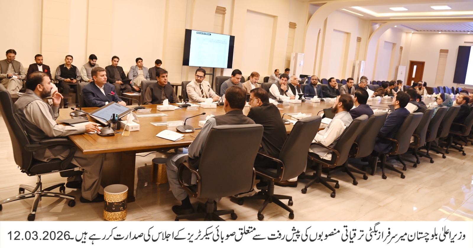 وزیر اعلیٰ بلوچستان نے کہا کہ صوبے میں جاری ترقیاتی منصوبوں کی بروقت تکمیل حکومت کی اولین ترجیح ہے اور اس حوالے سے کسی قسم کی غفلت یا تاخیر برداشت نہیں کی جائے گی۔ انہوں نے ہدایت کی کہ تمام محکمے ترقیاتی منصوبوں کی رفتار، معیار اور شفافیت کو یقینی بنائیں تاکہ عوام کو ان منصوبوں کے ثمرات جلد از جلد میسر آسکیں انہوں نے کہا کہ عوامی فلاح و بہبود، بہتر گورننس اور بنیادی سہولیات کی فراہمی حکومت کی ترجیحات میں سرفہرست ہیں اور حکومت بلوچستان صوبے کی پائیدار ترقی اور عوام کی خوشحالی کے لیے تمام دستیاب وسائل بروئے کار لا رہی ہے۔