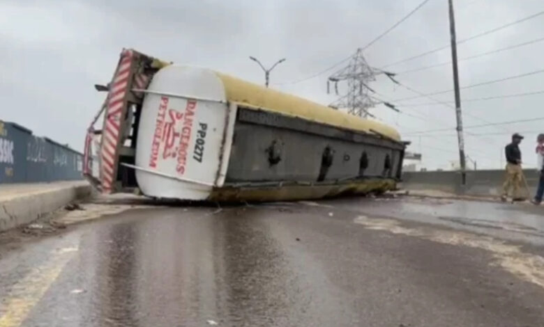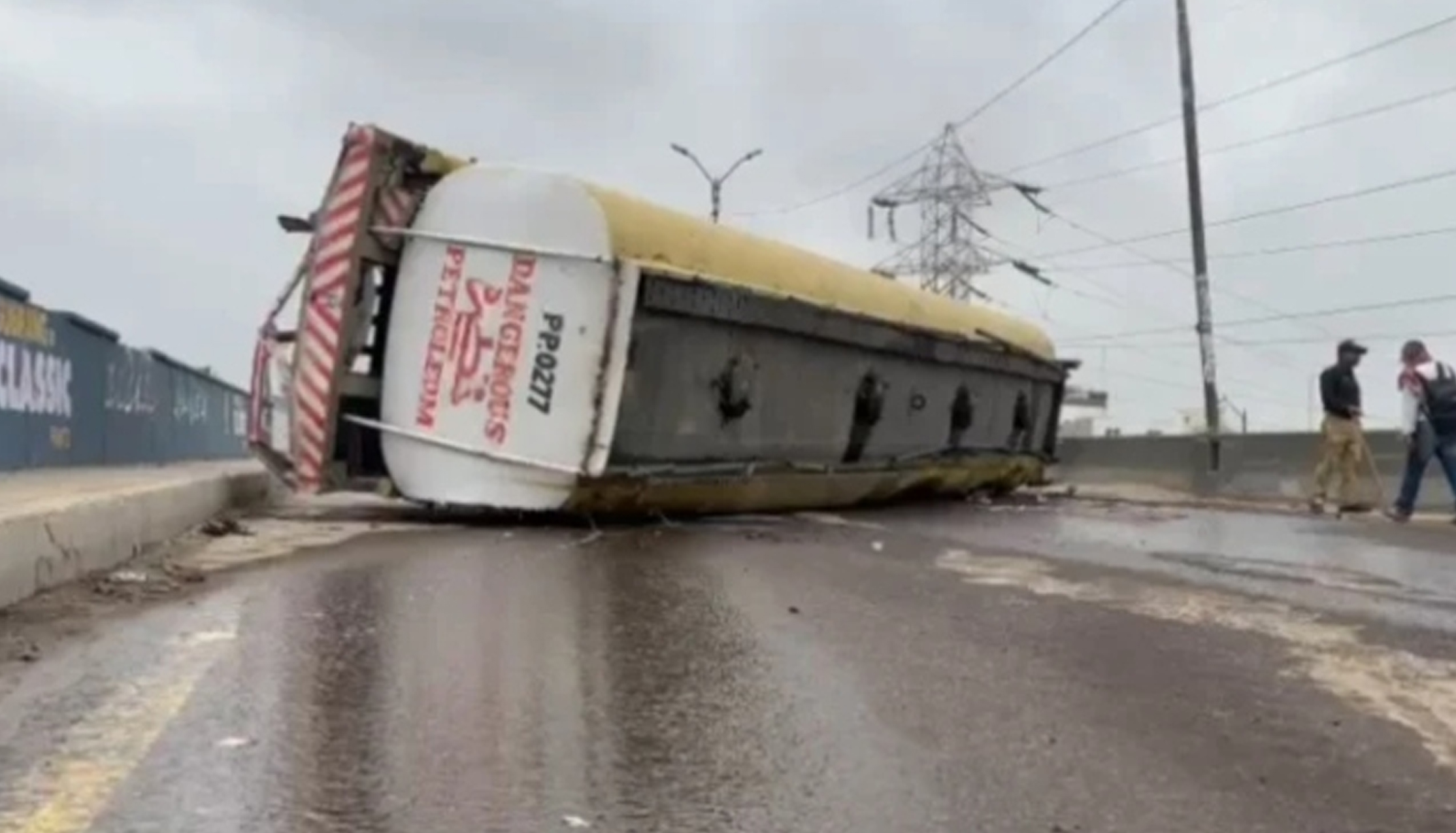 کراچی: منگھوپیر میں دو آئل ٹینکرز میں تصادم، 2 افراد کو کچل ڈالا، ڈرائیورز فرار