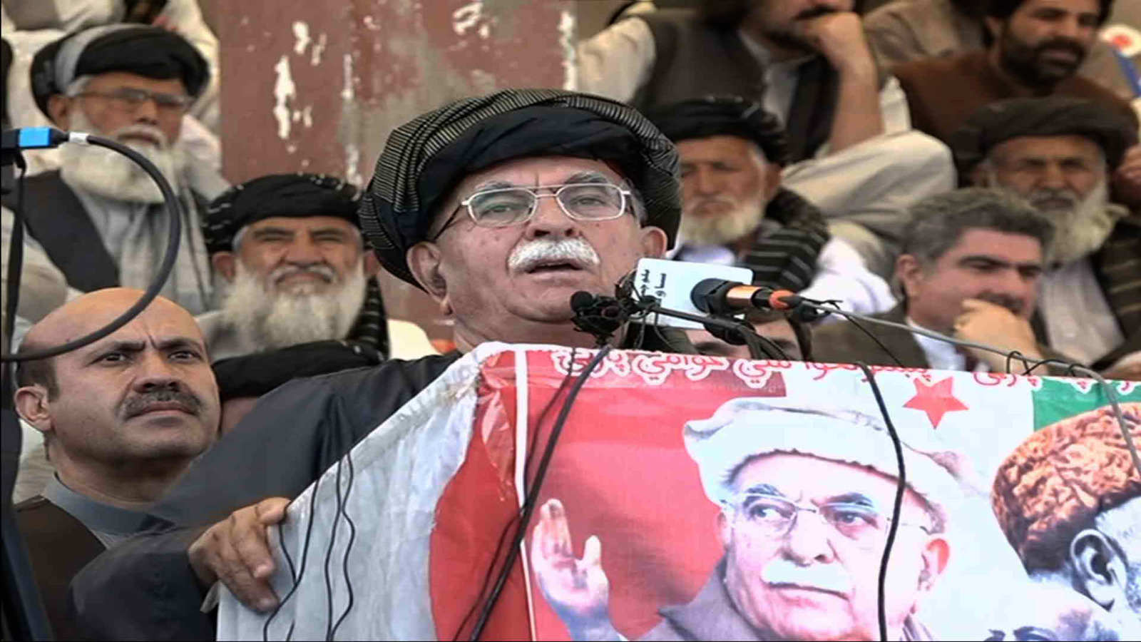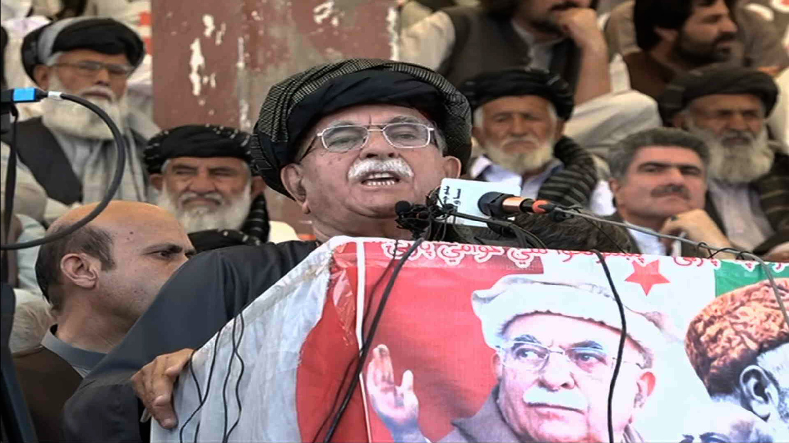 انہوں نے مزید کہا کہ پشتون، بلوچ اور دیگر محکوم قومیں اس ملک میں صرف برابری اور وقار کی بنیاد پر رہنا چاہتی ہیں، اگر ہماری سرزمین کے وسائل پر قبضہ کرنے اور ہماری تاریخی و ثقافتی شناخت مٹانے کی کوشش کی گئی تو اس کے نتائج سنگین ہوں گے؛ محمود خان اچکزئی نے خطے کی صورتحال پر تشویش کا اظہار کرتے ہوئے کہا کہ افغانستان کے ساتھ جاری کشیدگی اور فضائی کارروائیاں پشتونوں کے خلاف ایک سوچی سمجھی سازش ہے، ریاست کو اپنی “فرنٹ لائن اسٹیٹ” والی پالیسی ترک کر کے ہمسایوں کے ساتھ باہمی احترام اور امن پر مبنی تعلقات استوار کرنے ہوں گے؛ انہوں نے کارکنوں پر زور دیا کہ وہ آئین کی سربلندی اور عوامی حقوق کے تحفظ کے لیے منظم ہو جائیں کیونکہ اب وقت آ گیا ہے کہ طاقت کے زور پر عوام کو دبانے کا سلسلہ ہمیشہ کے لیے ختم کیا جائے؛ خطاب کے دوران شرکاء نے “آئین کی بالادستی” اور محمود خان اچکزئی کے حق میں فلک شگاف نعرے لگائے جس سے پنڈال گونج اٹھا۔