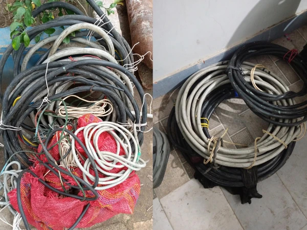 ملزمان کے قبضے سے 80 کلوگرام سے زائد چوری شدہ کاپر وائر بھی برآمد کی گئی ہے