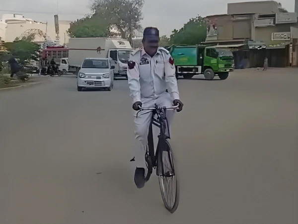 سفری اخراجات کم کرنے کے لیے سائیکل پر ڈیوٹی کے لیے آرہا ہوں، ٹریفک پولیس اہلکار