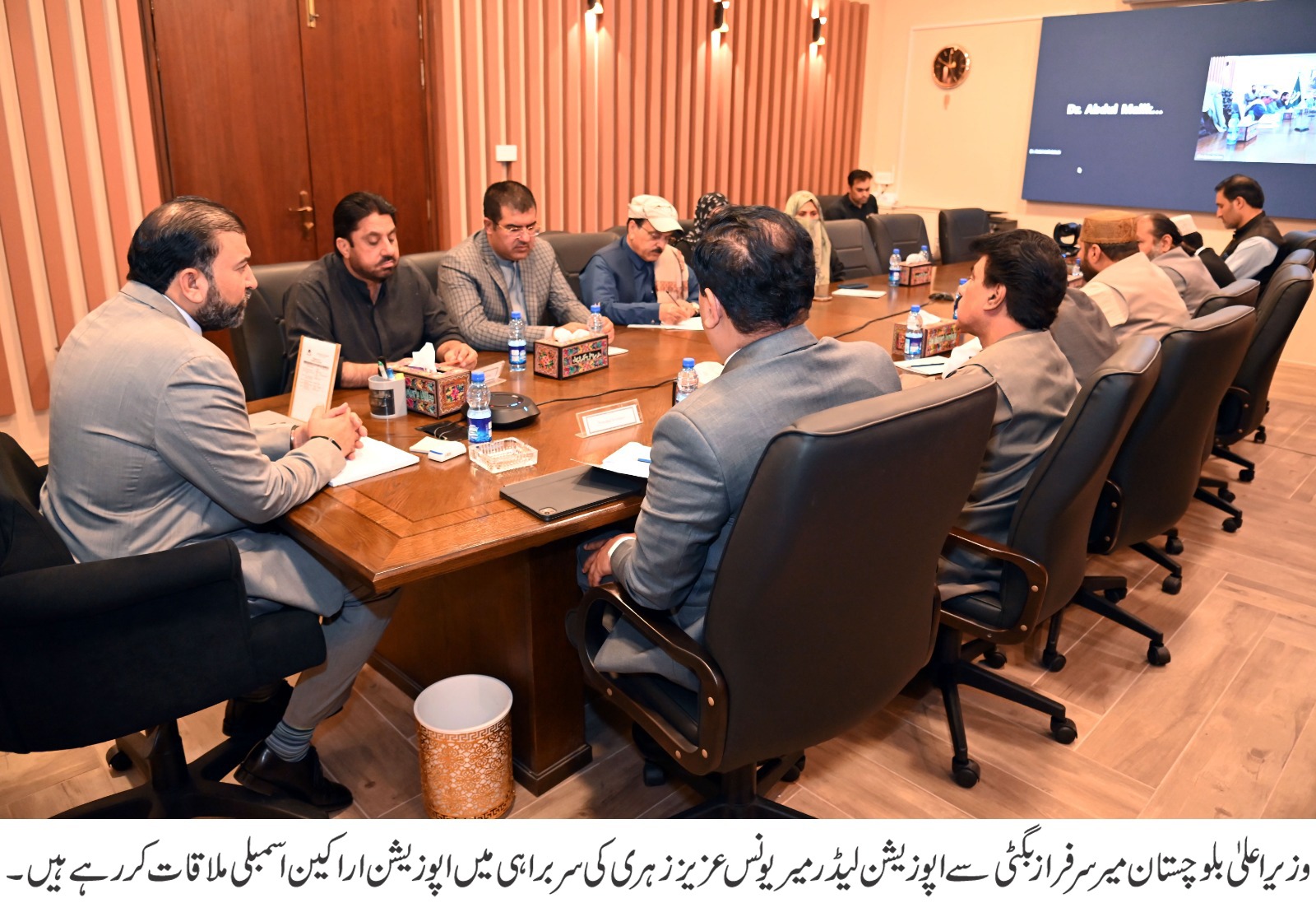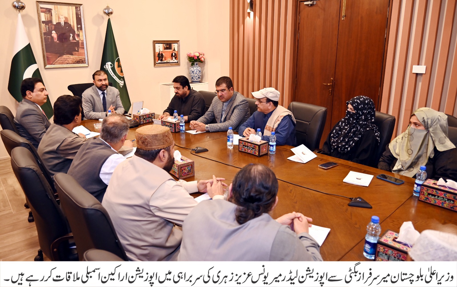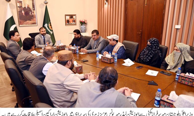 کوئٹہ (قدرت روزنامہ)وزیر اعلیٰ بلوچستان میر سرفراز بگٹی سے بلوچستان اسمبلی کے اپوزیشن لیڈر میر یونس عزیز زہری کی سربراہی میں اپوزیشن اراکین نے ملاقات کی جس میں پارلیمانی امور، آئندہ مالی سال کے بجٹ اور ترقیاتی منصوبوں سمیت اہم معاملات پر تفصیلی تبادلہ خیال کیا گیا ملاقات کے دوران حکومت اور اپوزیشن کے مابین اس امر پر اتفاق کیا گیا کہ آئندہ مالی سال کے پبلک سیکٹر ڈویلپمنٹ پروگرام (پی ایس ڈی پی) کی ترجیحات کو عوامی ضروریات اور زمینی حقائق سے ہم آہنگ کیا جائے گا تاکہ ترقی کے ثمرات براہِ راست عوام تک پہنچ سکیں وزیر اعلیٰ بلوچستان میر سرفراز بگٹی نے اس موقع پر کہا کہ ٹریژری اور اپوزیشن دونوں ایوان کے منتخب نمائندے ہیں اور عوامی مفاد میں پیش کی جانے والی ہر مثبت اور تعمیری تجویز کا خیرمقدم کیا جائے گا انہوں نے کہا کہ بلوچستان اسمبلی پارلیمانی روایات اور صوبائی اقدار کا خوبصورت امتزاج ہے، جہاں باہمی احترام، برداشت اور اعلیٰ اخلاقی روایات کو ہمیشہ مقدم رکھا گیا ہے