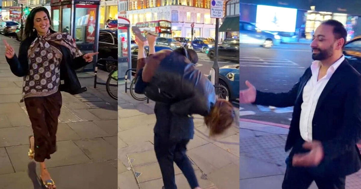 تاہم معاملہ اس وقت دوبارہ گرم ہو گیا جب فضا علی نے اسی وائرل لمحے کو لندن میں دوبارہ دہرا دیا۔ اس بار یہ منظر شہر کی مصروف سڑک پر مشہور مقام ہیروڈز کے سامنے فلمایا گیا، جہاں انہوں نے اپنے شوہر کے ساتھ وہی انداز اپنایا جو پہلے تنقید کا باعث بن چکا تھا۔