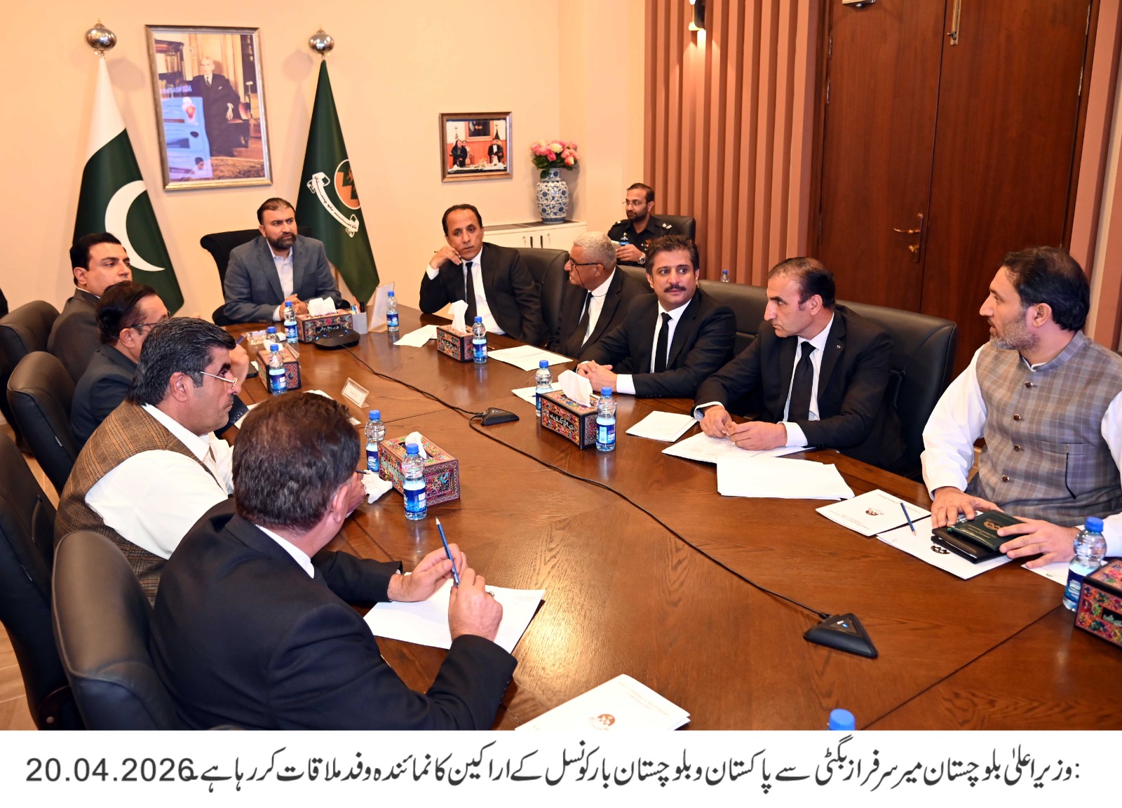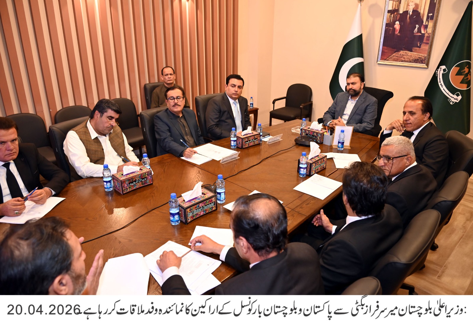 وزیر اعلیٰ نے اس عزم کا اظہار کیا کہ حکومت وکلاء برادری کے ساتھ مل کر فلاحی منصوبوں کو آگے بڑھائے گی اور وکلاء کے لیے شروع کیے گئے منصوبے جلد از جلد مکمل کیے جائیں گے ملاقات میں وکلاء نمائندگان میں پاکستان بار کونسل کے رکن منیر احمد کاکڑ جبکہ بلوچستان بار کونسل کے اراکین نادر چھلگری، ایاز مندوخیل، نجیب کاکڑ اور افضل حریفال شامل تھے اس موقع پر پرنسپل سیکرٹری عمران زرکون اور سیکرٹری قانون ڈاکٹر پرویز نوشیروانی بھی موجود تھے