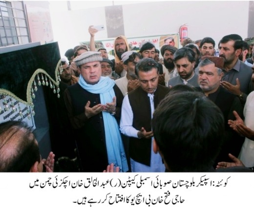 اسپیکر بلوچستان اسمبلی نے چمن میں 3 نئے بی ایچ یوز کا افتتاح کردیا ‘ موجودہ صوبائی حکومت دور افتادہ علاقوں میں صحت کی سہولیات کی فراہمی کے لیے پُرعزم ہے، کیپٹن ر عبدالخالق اچکزئی