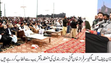 آج اقوام بگٹی نے جو دستار میرے سر رکھی ہے وہ ایک امانت ہے میں آپ اقوام سے یہ وعدہ کرتا ہوں کہ میں آپ کے توقعات پر پورا اترنے کی بھر پور کوشش کرتے ہوئے آپکے ساتھ پوری ایمانداری اور محنت کے ساتھ کھڑا رہوں گا ۔ وزیر اعلیٰ بلوچستان چیف آف بگٹی قبائل۔ سرفراز خان بگٹی