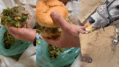 گائے کو برگر کھلانے کی ویڈیو وائرل، ’بعد میں ہم ان کا برگر کھائیں گے‘