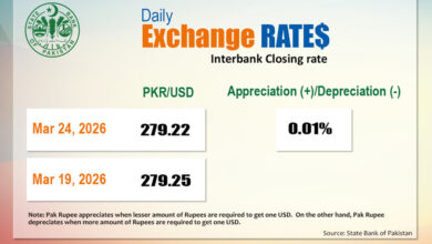 منگل 24 مارچ کو روپے کے مقابلے میں ڈالر، سعودی ریال سمیت اہم کرنسیوں کی قیمت