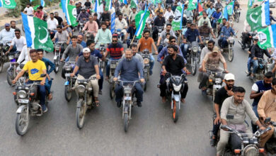 جماعت اسلامی کی موٹر سائیکل اور گاڑیوں کی نمبرپلیٹس کی تبدیلی کیخلاف کراچی میں بائیک ریلی