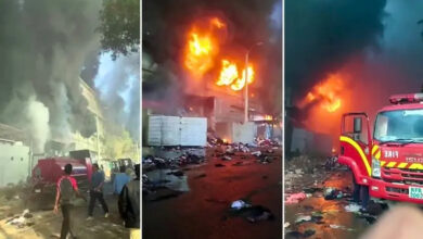 کراچی: گارمنٹس فیکٹری میں بھڑکنے والی آگ سے عمارت منہدم، دو فائر فائٹر زخمی